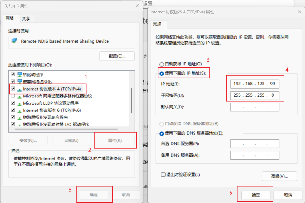 选择ipv4属性,然后将ip地址改为192.168.123.99,子网掩码改为255.255.255.0,保存退出: